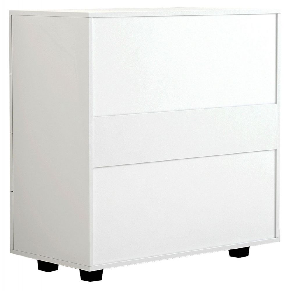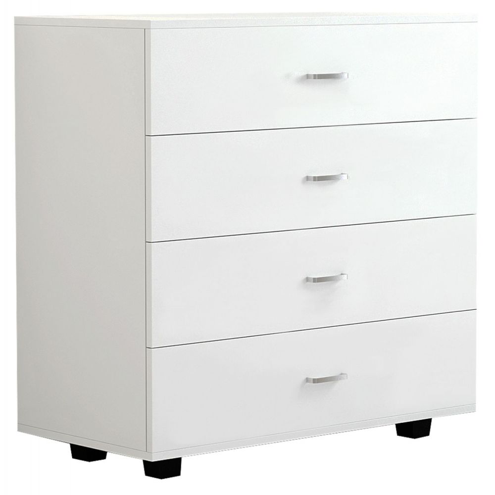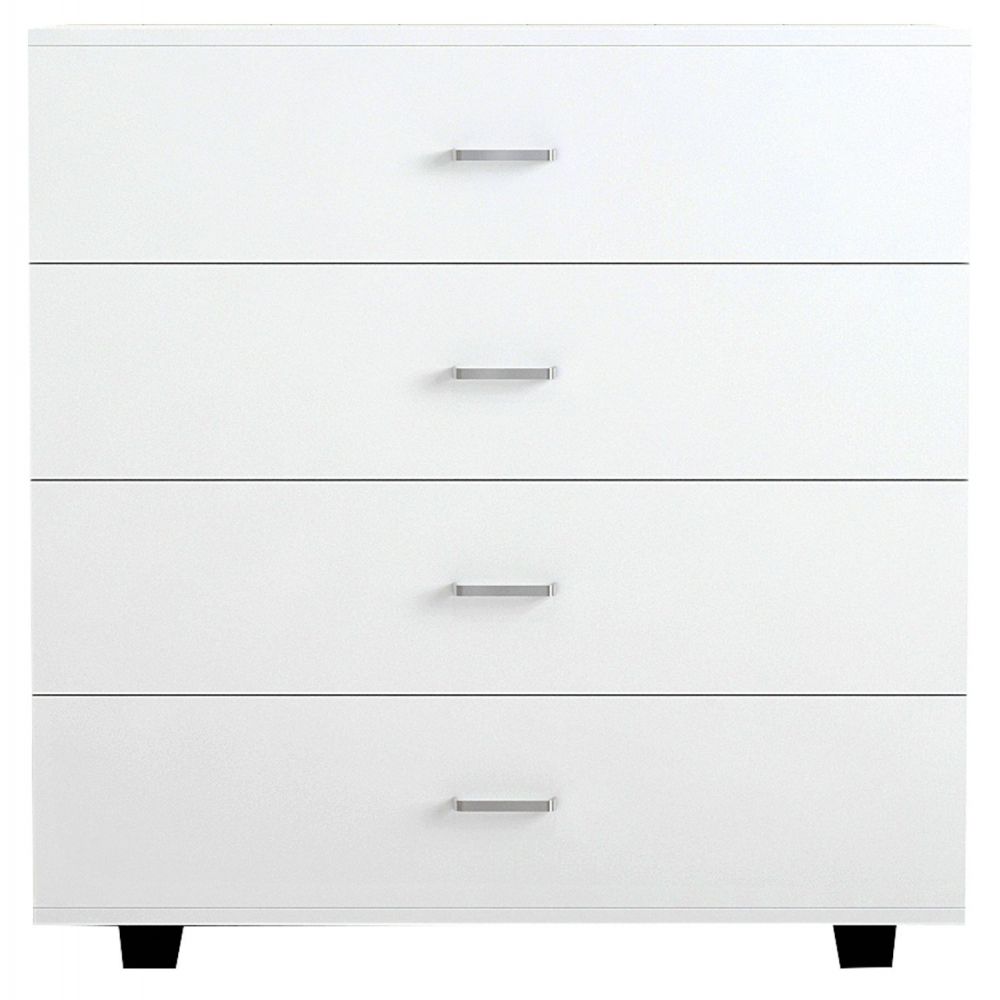 Η ΗΜ8996.03 είναι μια μεγάλη συρταριέρα με 4 φαρδιά συρτάρια που θα ικανοποιήσει όλες τις ανάγκες σας. Έχει έντονο ΛΕΥΚΟ χρώμα με χερούλια σε ασημί απόχρωση. Τα μαύρα ποδαράκια της συρταριέρας, είναι σταθερά και φαρδιά προσφέροντας στιβαρότητα στην κατασκευή και ταυτόχρονα δημιουργούν μια κλασσική διχρωμία με το κυρίως σώμα της συρταριέρας.